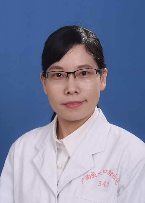 蒋兰岚,口腔医学博士,副主任医师,硕士生导师,现为口腔医学院、附属口腔医院牙周黏膜科医师,广西口腔医学牙周黏膜专委会委员/学术秘书。入选广西医科大学附属口腔医院优秀青年人才计划。主要研究方向为口腔感染免疫性疾病机制及防治。发表学术论文14篇,其中SCI 8篇。曾获评为先进教育工作者,优秀教师,主持国家自然科学基金1项,广西壮族自治区自然科学基金1项,厅级基金项目2项,其他科研教学项目2项,曾获得自治区科技进步二等奖、广西医药卫生适宜技术推广一、二等奖。