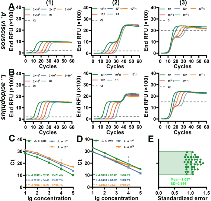 本次升级:人工智能赋能多重检测同时检测多种病原体(多重PCR)时,复杂的扩增曲线使得人工分析效率低下、误差增大。针对此挑战,本次研究进行了人工智能的深度整合,利用AI算法对多重VC-PCR产生的复杂扩增曲线进行智能解析。研究以三种常见致龋菌(粘性放线菌、嗜酸乳杆菌、变异链球菌)为模型,在结合机器学习及专家系统等算法后,显著提高了二重和三重pcr的半定量和定量准确率。这些AI模型能够自动、精准地从重叠的荧光信号中提取特征,进行鉴定与定量,克服了传统多重qPCR对荧光通道数目、昂贵探针的依赖,以及人工判读的主观性与低效性。