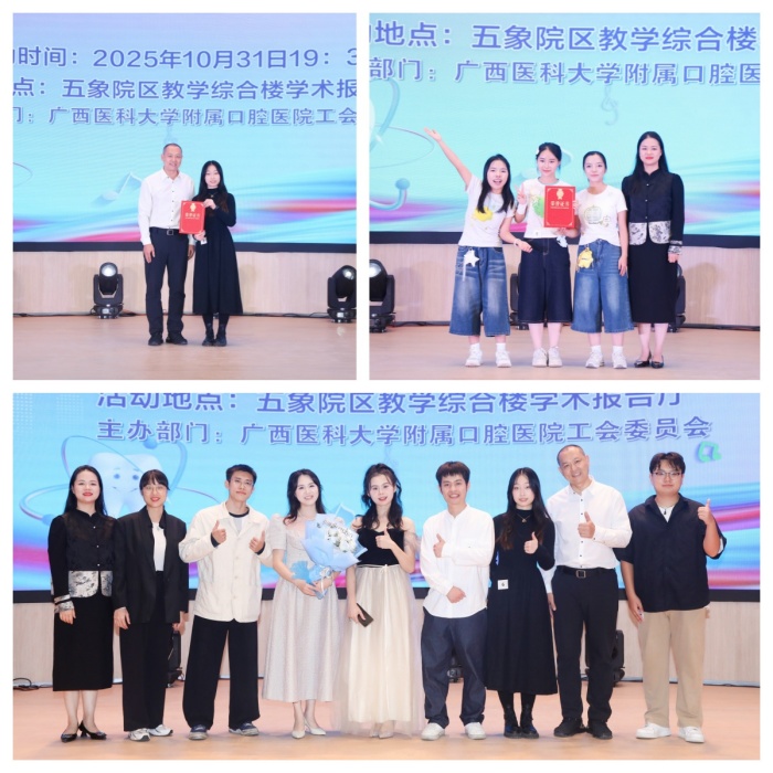 为厚植医院文化底蕴、传播口院精神,营造积极向上的集体氛围,10月31日,广西医科大学附属口腔医院第二届“口院好声音”歌唱比赛在五象院区学术报告厅举办。医院党委书记韦锦斌、党委副书记李松峰、副院长兼工会主席卢小玲莅临现场观赛指导。